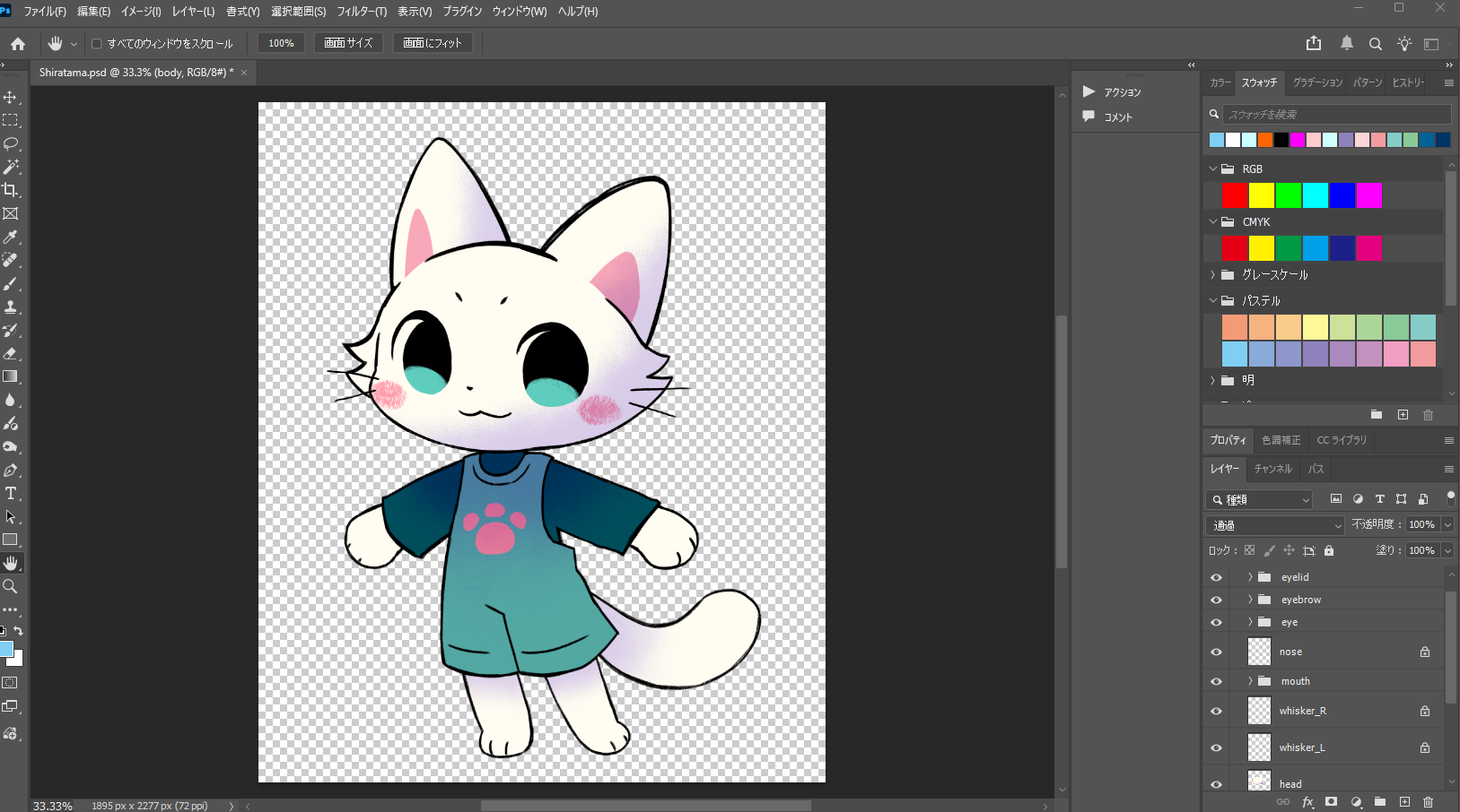 1まいの絵にボーンを入れてくねくねさせる勉強をしている。