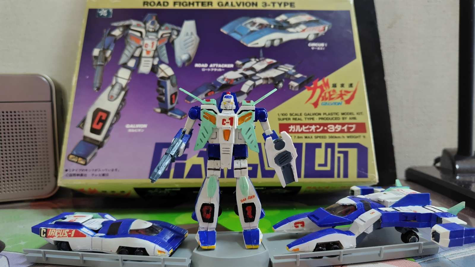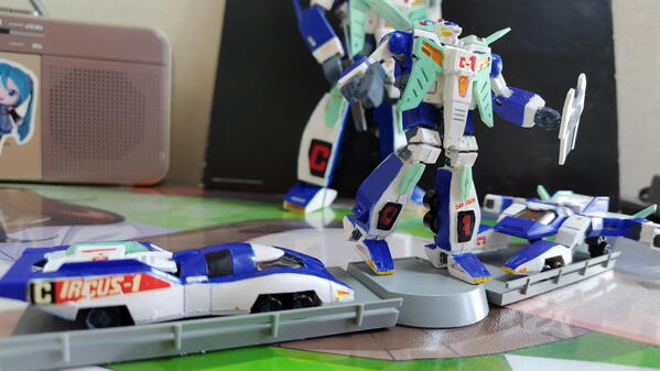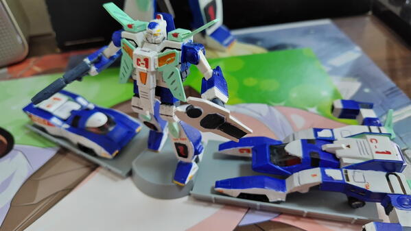 ガルビオン3機セットです。基本接着剤はいりません。ロボットは可動します。